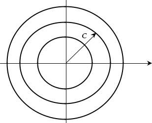 С геометрической точки зрения это решение представляет собой семейство концентрических окружностей с центром в начале координат и радиусом С (см. рисунок).