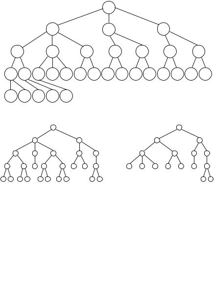 Большую роль в различных отраслях науки имеют связные ациклические (не имеющие циклов) графы, которые на множест- веVвершинимеютЕ=(V–1)ребер,т. е.G=(V,(V–1)).Этиграфы носят название деревьев [10, 21]. Заметим, что (V – 1) — это минимальное количество ребер для того, чтобы граф был связным.