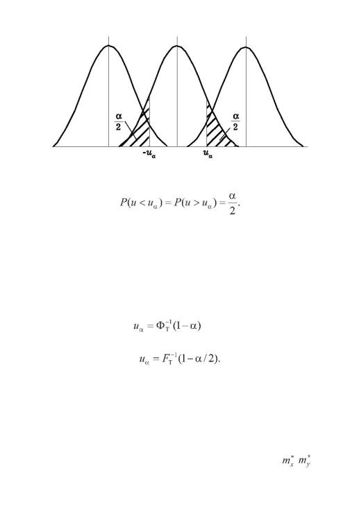 строят двустороннюю критическую область. Поскольку кривая плотности распределения Стьюдента симметрична относительно нуля, то критическая область является симметричной. Границы критической области ±u могут быть определены либо с помощью таблицы распределения Стьюдента (табл. 8 приложения), в которой представлены значения вероятности