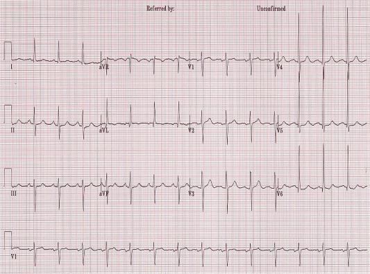 В общем анализе крови без патологических изменений. Представлена ЭКГ (скорость 25 мм/с):