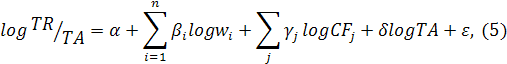 В эмпирической банковской литературе в качестве зависимой переменной часто применяются процентные доходы взамен совокупных, с целью захватить только посредническую деятельности банков (Bikker, Haaf, 2002). В других исследованиях в качестве прокси output prices применяют отношение совокупных доходов к совокупным активам. Это приводит к уравнению логарифмическом цен вместо логарифмических уравнений доходов.
