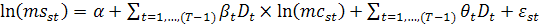 где ms - доля рынка, mc - предельные издержки, D - дамми-переменная времени, β - индикатор Буна.