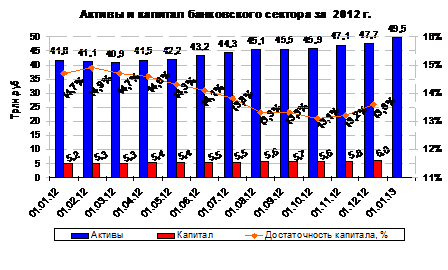 За 2012 год активы банковского сектора увеличились на 18,9%, до 49509,6 млрд. рублей (рис.2).
