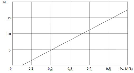 залежність гальмівного моменту Мг від тиску в камері РК,
