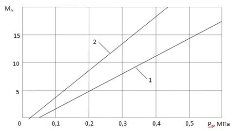 Співставлення розрахункової залежності Мг(РК) з наведеною в літературі експериментальною показало, що найбільше відхилення між розрахунковим та експериментальним гальмівними моментами при тиску повітря 0,6 МПа склало 9%, що слід вважати задовільним.