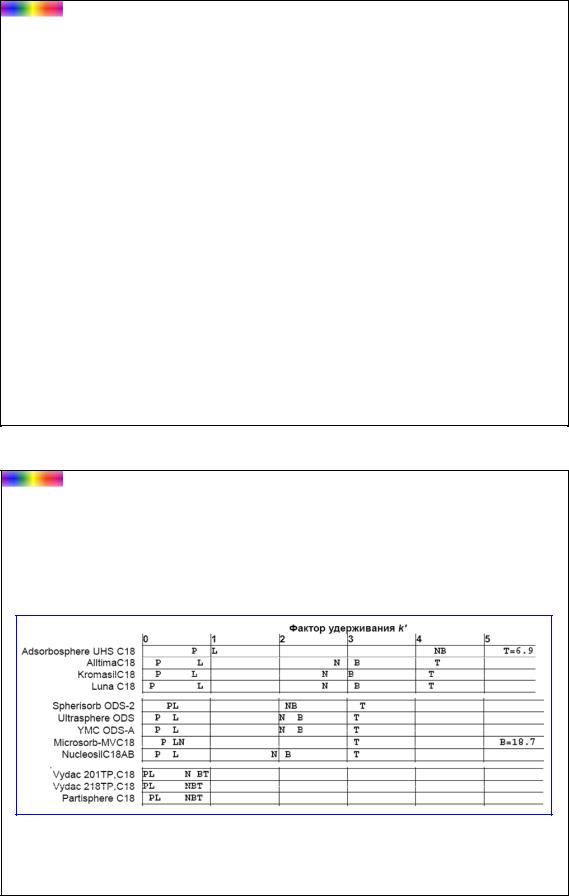 Предельная емкость фаз С18 для веществ с M=100-500 составляет 200 мг вещества на 1 г адсорбента