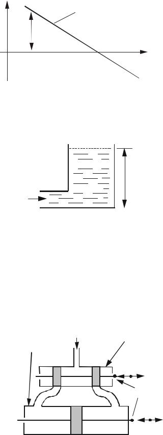 Пример 2. Интегрирующим звеном является устройство "золотник-гидроцилиндр" (гидравлический интегратор), приведенное на рис.2.40. Это устройство входит в состав автопилота, служащего для поддержания заданного режима полета летательного аппарата.