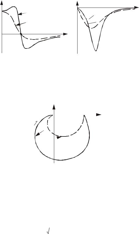 оси, так как W (0) = k , и с ростом частоты от ω = 0 до ω = ∞ последовательно проходит четвертый и третий квадранты. С уменьшением ξ годограф расширяется ("разбухает").