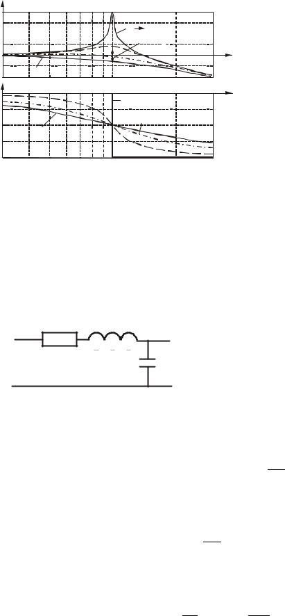Поступив по аналогии с определением наклона ЛАЧХ апериодического звена (см. § 2.2), найдем, что наклон высокочастотной асимптоты ЛАЧХ колебательного звена составляет –40 дБ/дек. Точка пересечения низкочастотной и высокочастотной асимптот соответствует частоте wc = 1/T . На этой частоте имеет место максимальное отклонение