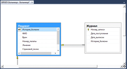 "Пациент", и, держа кнопку, перетащить курсор мыши на дочернюю