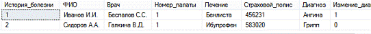 @количество int OUTPUT@количество=Журнал.История_болезни
