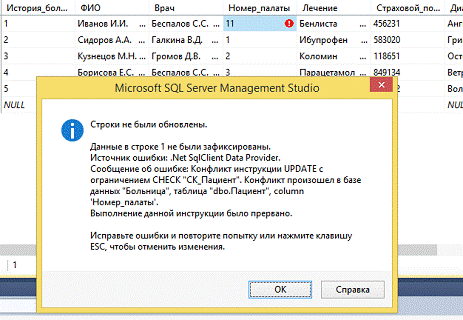 Было предусмотрено ограничение целостности: каждый больной лечится в