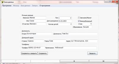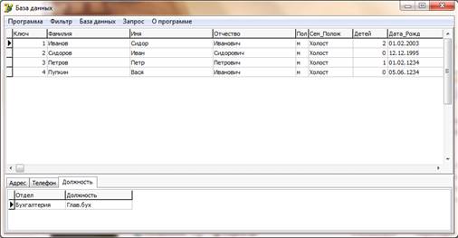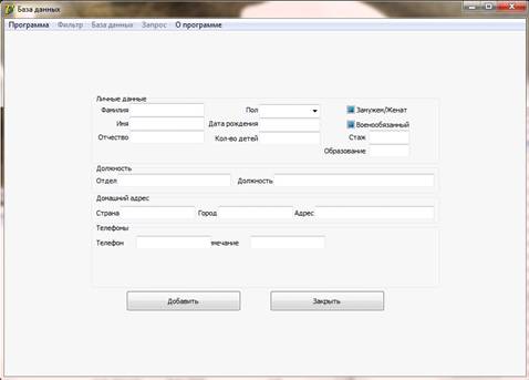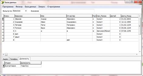 С помощью среды программирования Delphi 7 был создан интерфейс, позволяющий выполнять множество функций работы с базой данных, а именно: