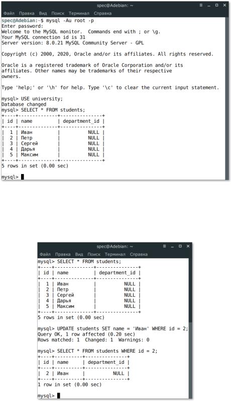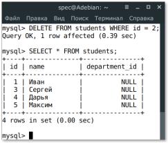 UPDATE students SET name = 'Иван' WHERE id = 2; SELECT * FROM students WHERE id = 2;