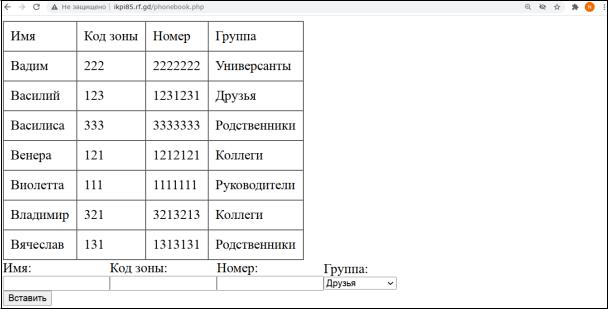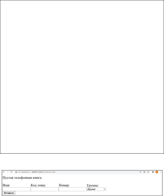 Откроем веб-страницу в браузере (рис. 1): http://ikpi85.rf.gd/phonebook.php