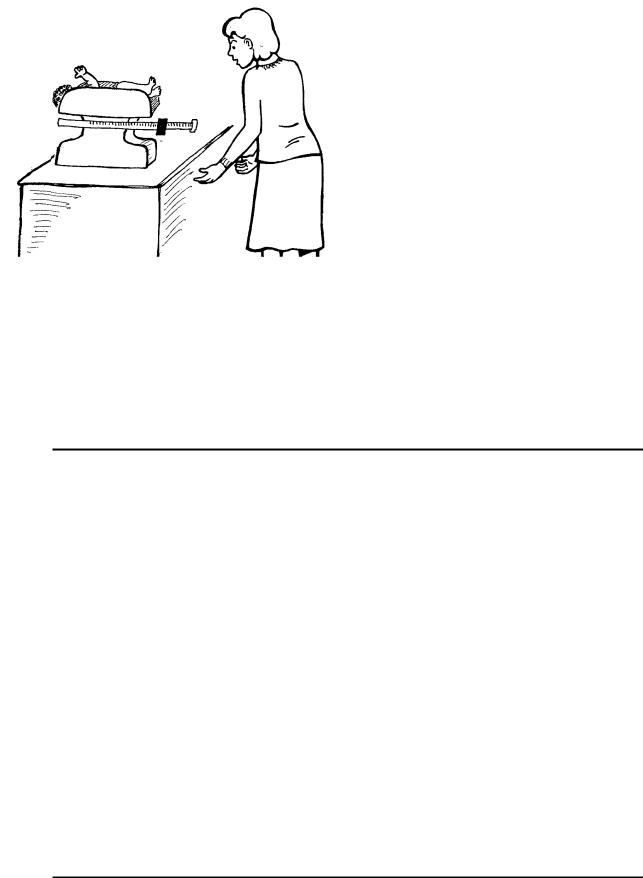 Рядом с матерью и ребенком находится карта физического развития ребенка. Карта развития показывает, что на втором месяце жизни он мало прибавил в весе. Линия его физического развития не идет параллельно эталонным кривым. Она поднимается слишком слабо. Это указывает на то, что ребенок физически развивается медленно.