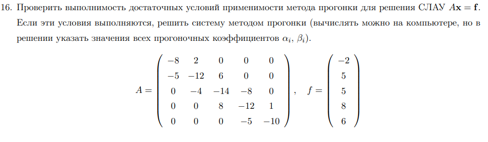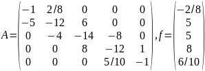 M=[-8 2 0 0 0 ; -5 -12 6 0 0; 0 -4 -14 -8 0; 0 0 8 -12 1; 0 0 0 -5 -10];
