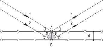Рис. 1.2. Отражение рентгеновского излучения от кристаллических плоскостей