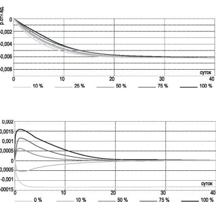 Рис. 8.4. Нестационарное отравление (изменение реактивности) ВВЭР-1000 самарием при изменении мощности с 25 % Nном