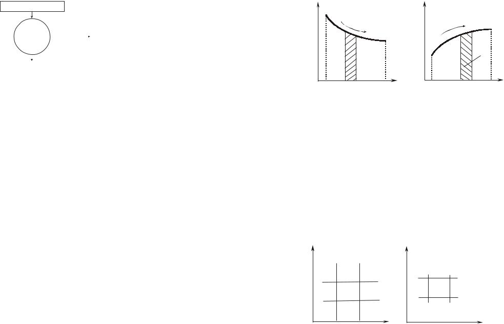 Работа, полученная в процессе, обусловлена расширением рабо- чего тела dv > 0. Аналогично, подвод тепла к рабочему телу сопровождается увеличением его энтропии (dS > 0); при отводе тепла энтропия тела уменьшается. На рис 2.4.2, а) в Pv-координатах прямыми, параллельными координатным осям, изображаются процессы Р = idem – изобарные, v = idem – изохорные. Линии, параллельные осям координат, изображают процессы Т = idem – изотермический, dq = 0,