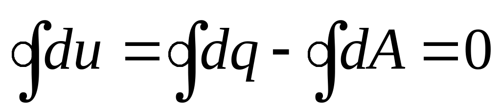 В общем случае (первый закон термодинамики) du=dq–dA. Поскольку внутренняя энергия – функция состояния, то du – это полный дифференциал, и за цикл