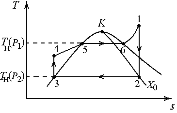 Принципиальная схема установки, реализующей этот цикл, и соответствующая этой схеме h-s-диаграмма представлены на рис. 8.5, 8.6.