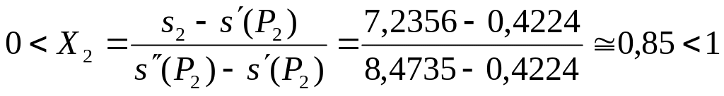 h2=h(P2)+X2[h(P2)– h(P2)]2189 кДж/кг.