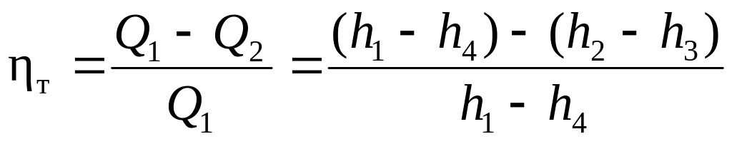 Термический к.п.д. цикла представляет собой отношение полезной работы к подведенной теплоте: