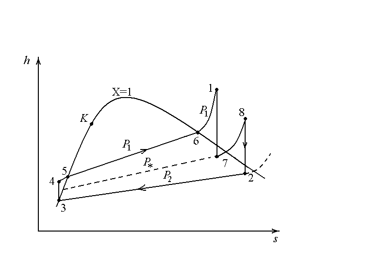 Рис. 8.6. h-s-диаграмма цикла Ренкина с промежуточным
