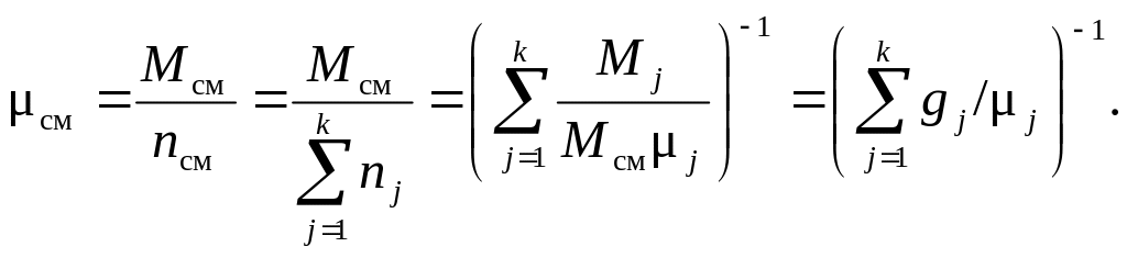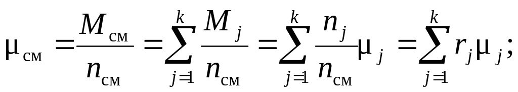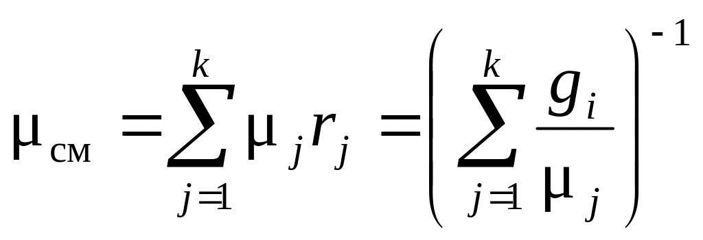 Эффективную молярную массу смеси можно рассчитать, если известны объемные доли компонентов смеси ri=Vj/Vсм. Перепишем уравнение (3.2) в виде