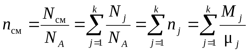 сумме киломолей компонент смеси (nj):