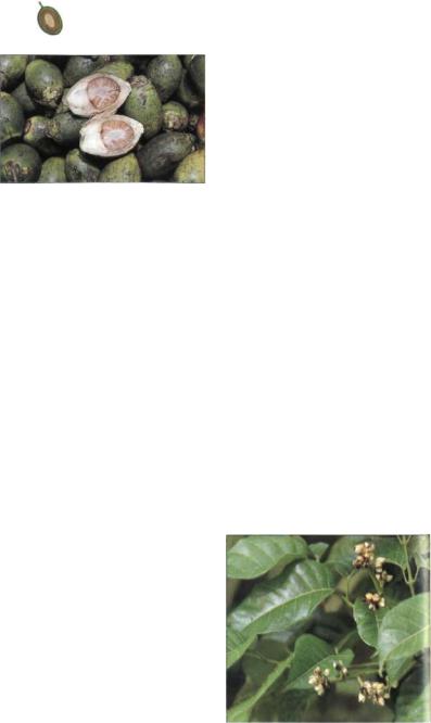 Родственные виды. Плоды еще целого ряда видов этого рода съедобны. Приме ром могут служить похожие на сливу тем но-красные кислые плоды Terminalia edulis Merr. (Индонезия, Филиппины) или лишь слегка уплощенные, в спелом состоянии красные плоды Т. kaernbachii Warburg (Ин донезия, острова Тихого океана).