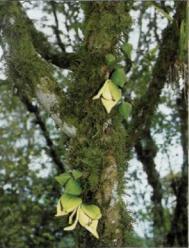 Обоеполые цветки растут на коротких цветоносах по одному или два прямо из ствола или из толстых веток. У них имеются 3 треугольных чашелистика размером 4 мм и расположенные двумя кругами, по 3 в каждом, толсто-мясистые, желтовато-зеле ные, сглаженно-треугольные лепестки раз мером до 5 см.