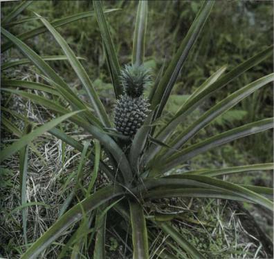 Выращивание и сбор урожая. Расте ниям требуются высокие температуры. Они засухоустойчивы и могут расти в экватори альных областях до высоты 1 500 м над уровнем моря. Чем прохладнее климат, тем выше содержание кислоты в плодах. Ананас размножается отпрысками, частя ми побегов и листьями, которые легко уко реняются в почве. Саженцы начинают цве сти через 10-18 месяцев. Так как спонтан ное образование цветков происходит не равномерно, на плантациях с использова нием этилена и способствующих росту ве ществ добиваются одновременного цвете ния. Плоды созревают примерно через 4 месяца после цветения.