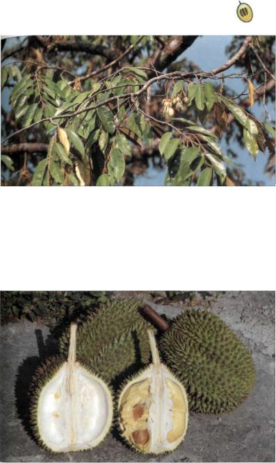 родственные виды. К роду Durio, име ющему в Юго-Восточной Азии множество видов, относятся также другие, трудно раз личимые виды со съедобными, также силь но пахнущими плодами, которые культиви руются в небольших количествах, прежде всего на Борнео, как, например, D. oxleyanis Griff, и D. duicis Весс.