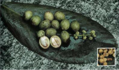 Лист, цветки и плоды рамбая со съедобной кровелькой семени