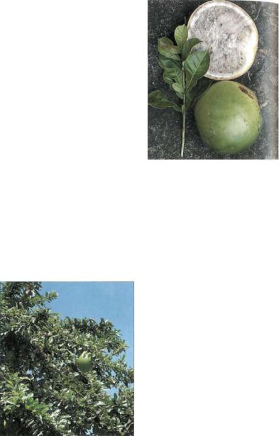Плод. Круглая, овальная или яйцевид ная ягода размером до 20 см имеет твердую деревянистую оболочку толщиной до 5 мм. Гладкая матовая поверхность плода покры та мелкими железами, в фазе спелости она желтая с коричневыми пятнами.