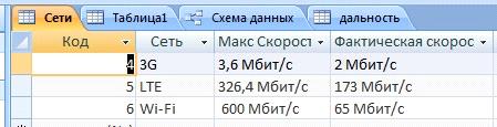 таблицу - рис. 2.1, на котором показана максимальная скорость сетей, а также
