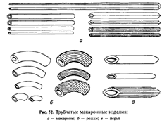 Макароны - длинная прямая трубка с прямым срезом. Длина макарон может колебаться для коротких изделий менее 150мм для длинных - более 200мм. Длинные макароны бывают одинарные и двойные гнутые, а также сформованные в мотки, бантики и гнезда.