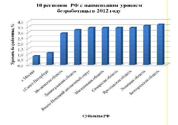 Рисунок 2.4. Регионы с наименьшим уровнем безработицы в Российской