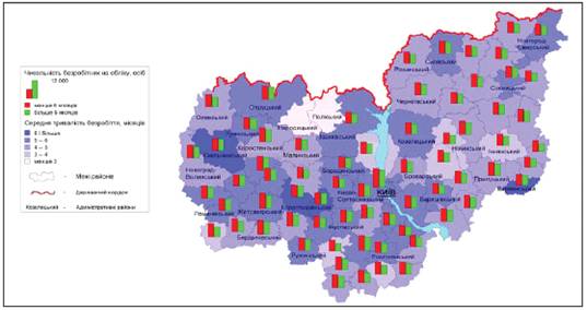 Найнижчий рівень безробіття за тривалістю незайнятості згідно з методологією МОП у 2015 р. спостерігався у Київській області (50,7%), у Чернігівській області цей показник становив (51,6%), найвищим він був у Житомирській області (64,6%) [4; 5; 6]. Високий рівень безробіття негативно впливає на всі аспекти життєдіяльності суспільства і людини, зумовлює втрату головного виробничого ресурсу суспільства робочої сили, неможливість реалізації потенціалу сотень тисяч людей, істотне скорочення потенційно можливого ВВП країни, зростання невиробничих державних видатків на виплату допомоги по безробіттю та перекваліфікацію безробітних, значні економічні збитки внаслідок втрати роботи найманими працівниками [2]. Науковці, вивчаючи середній клас, зосереджують увагу лише на матеріальному складнику, залишаючи поза увагою просторовий характер цього явища. Нині в географічних колах проблематика середнього класу розкривається у наукових працях, присвячених суспільно-географічному аналізу рівня життя населення, питанням регіональної політики та соціально-економічній нерівності.