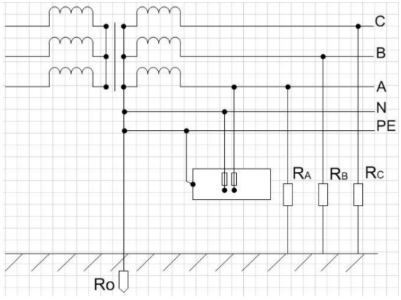 Рисунок 1 – Схема с заземленной нейтралью и подключенным оборудованием