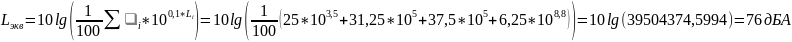 где L - октавный уровень звукового давления в помещении, дБ;