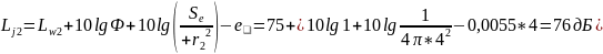 Уровень звука в расчетной точке: