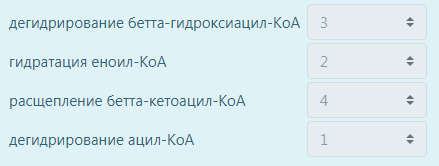 Расставьте в верной последовательности реакции, протекающие в цикле бетта-окисления:
