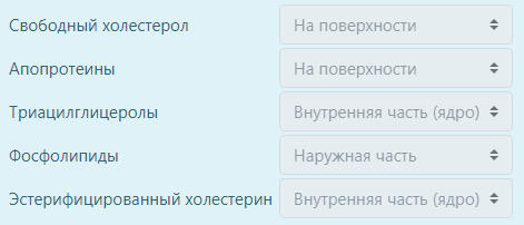 Укажите местонахождение основных компонентов в составе липопротеинов: