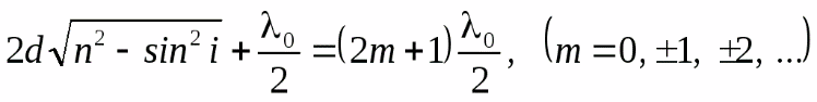 Условия (8), (9) зависят при постоянных значениях n, 0 от угла падения i и толщины пленки d, в зависимости от этого различают полосы равного наклона и полосы равной толщины.