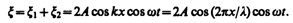 Амплитуда стоячей волны: А=2А0 |sin2пx/λ|