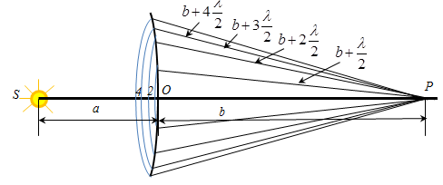 Волны, приходящие в т. Р от аналогичных точек двух соседних зон имеют противоположные фазы, т.к. разность хода между этими волнами равна λ/2.