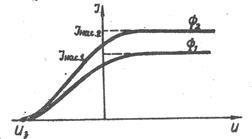 Если увеличить световой поток, падающий на катод, то есть увеличить число выбиваемых электронов, то ток насыщения станет увеличиваться (рис. 19).